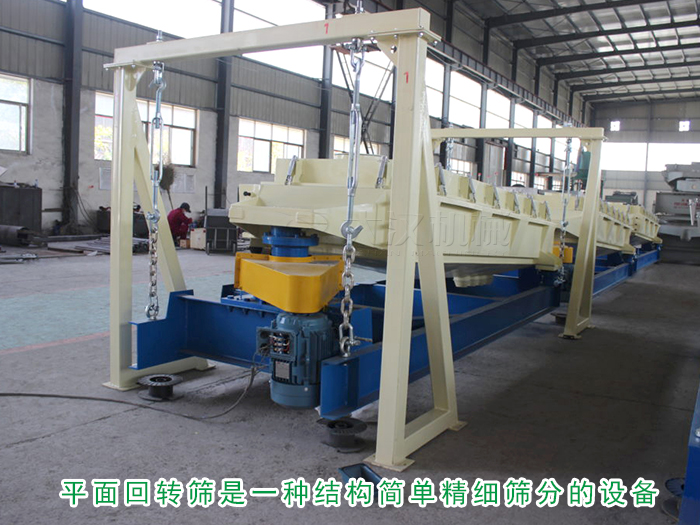 平面回轉篩是一種精細篩,該設備結構簡單,主要有以下部分組成,即篩架、篩箱、減震裝置、驅動裝置的部件組成,運作時性能穩定,