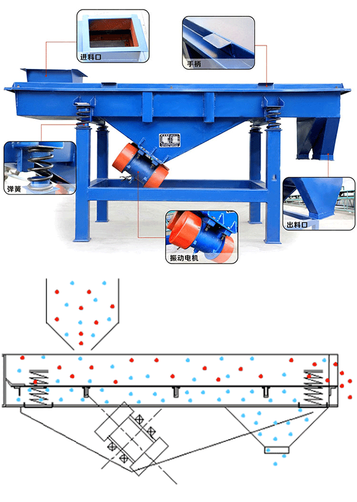 直線振動(dòng)篩是雙振動(dòng)電機(jī)驅(qū)動(dòng),當(dāng)兩臺(tái)振動(dòng)電機(jī)做同步、反向旋轉(zhuǎn)時(shí)使用振動(dòng)篩需要注意哪些細(xì)節(jié)呢?看這兒,其偏心塊所產(chǎn)生的激振力在平行于電機(jī)軸線的方向相互抵消,在垂直于電機(jī)軸的方向疊為一合力,因此直線篩的運(yùn)行軌跡為一直線。兩電機(jī)軸相對篩面有一傾角,在激振力和物料自重力的合力作用下,物料在篩面上被拋起跳躍式向前作直線運(yùn)動(dòng),從而達(dá)到對物料進(jìn)行篩選和分級(jí)的目的。