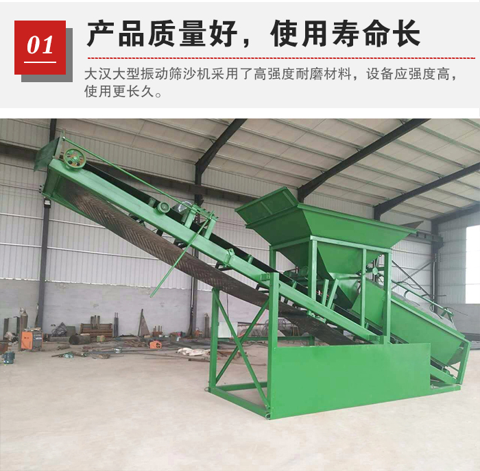 大型振動篩沙機是用于河道,水庫,煤場的沙石分離設備,大型振動篩沙機多少錢一臺?這里以新鄉大漢公司為例。