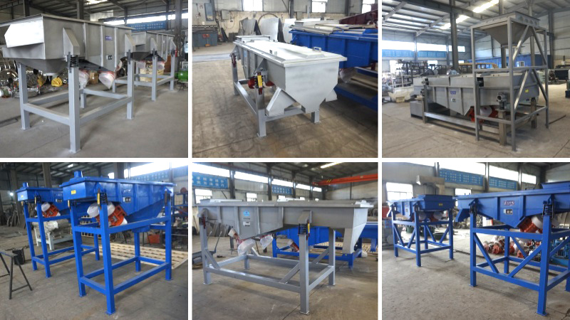 直線篩依靠?jī)蓚€(gè)相同頻率的反向電機(jī)使物料在篩面上直線向前跳躍,小于篩孔孔徑的物料通過篩網(wǎng)落入下層,大于篩孔尺寸的物料留在篩面上從該層出料口排出,從而達(dá)到對(duì)物料進(jìn)行篩分和分級(jí)的目的。